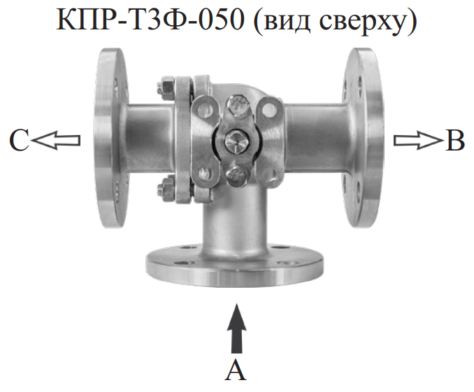 Кран шаровой трехходовой фланцевый КПР-Т3Ф с электроприводом ЭПР1 предназначен для управления потоком рабочей среды в трубопроводе